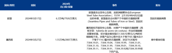 近些年针对我国无缝管的反倾销案件