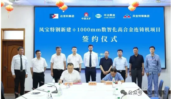 7月20日,凤宝特钢新建⌀1000mm数智化高合金圆坯连铸机项目与达涅利集团、中冶赛迪集团正式签约。标志着特钢公司落实优化调整产品结构、实现高质量发展钢铁升级规划项目正式启动,数智化特种钢Φ1000mm圆坯连铸机项目和转炉升级改造是该规划的重要组成部分。