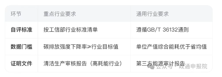 需按工信部发布的行业专属标准自评(如水泥行业需对标GB 16780)