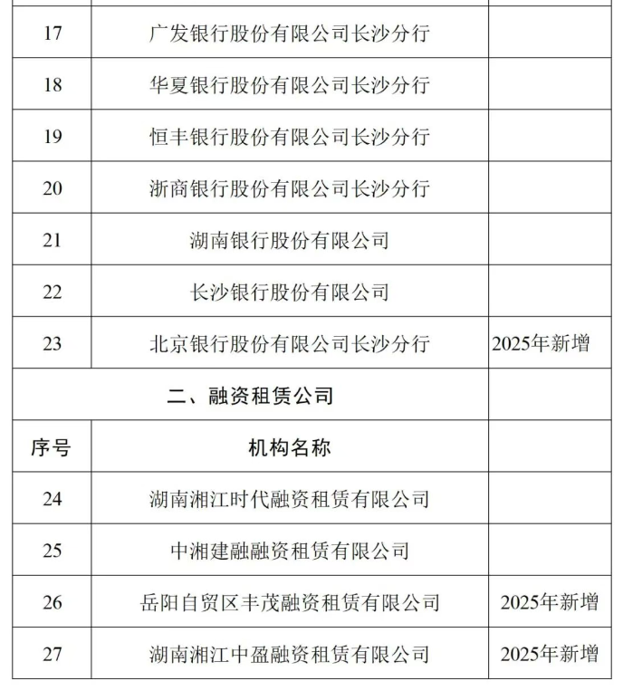 2025年湖南省工业企业设备更新和技术改造合作金融机构名单