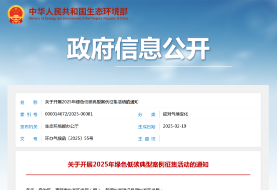 【行业要闻】生态环境部开展2025年绿色低碳典型案例征集活动