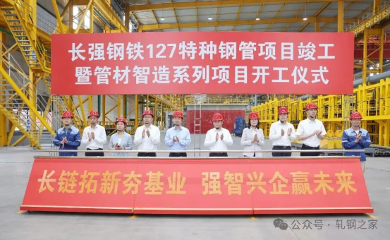 新开工的长强管材智造系列项目,是企业向产业链更高端、更智能、更绿色方向延伸的关键布局,总投资10亿元,主要包括127智能管加工、连铸机技术改造、炼钢厂精炼炉和优特钢小型棒材生产线等项目,建成后将极大提升产品附加值和综合竞争力。