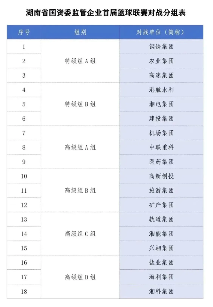 湖南钢铁集团高度重视本次联赛,在省国资委的指导下,构建了“赛事组委会+执行委员会+专门工作组”的三级组织架构,确保赛事专业、规范、高 效推进。抽签分组已完成,18支劲旅整装待发。