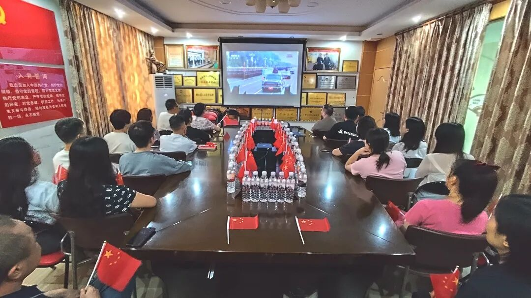 与此同时,集团组织全体机关员工在总部二楼会议室观看直播,共同见证这举世瞩目的历史时刻。